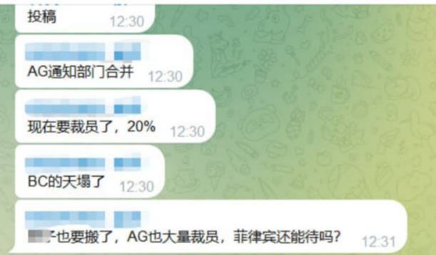 网友投稿:菲律宾AG通知部门合并,现在要裁员了,20%博彩的天塌了,脖子也要搬了,AG也大量裁员,菲律宾还能待吗?PS:裁这么多?