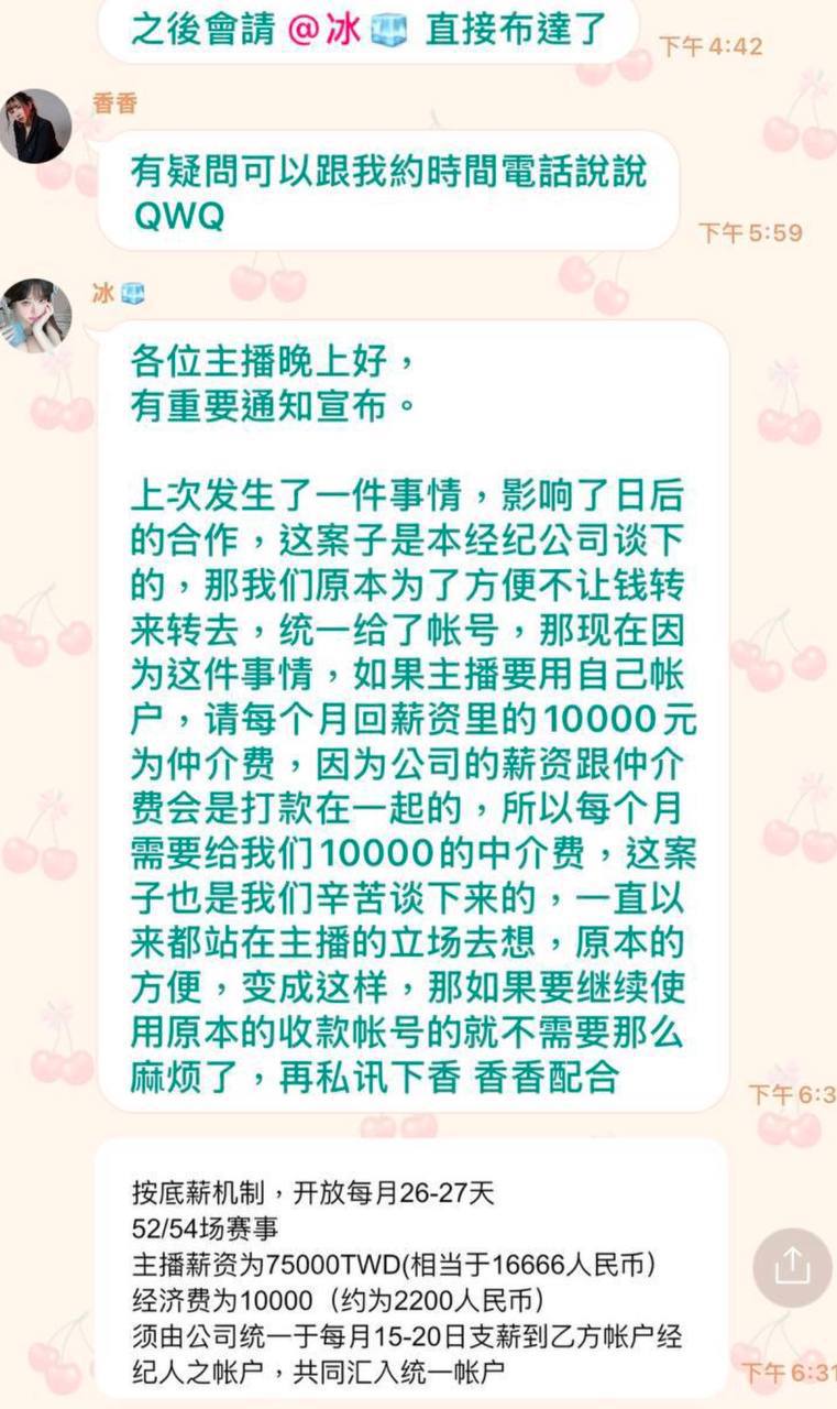 香香原本是主播,后来自己当了经纪人,和冰冰一起搭档演双簧。冰冰声称她和开云内部高层关系很好,平台很支持她,其实她就是开云的主播,假装成经纪人改了名字和平台合作,赚取平台的钱,这不是很可笑吗?网络这么发达,难道她以为没人会发现吗?她所谓的和内部高层关系好,真的可以这么轻松赚平台的钱!薪资福利和最初说的差距很大,平台的薪资是发U,经纪一开始让我们用她们给的U钱包,并且要我们向平台声称是自己的,后来我才…展开>>