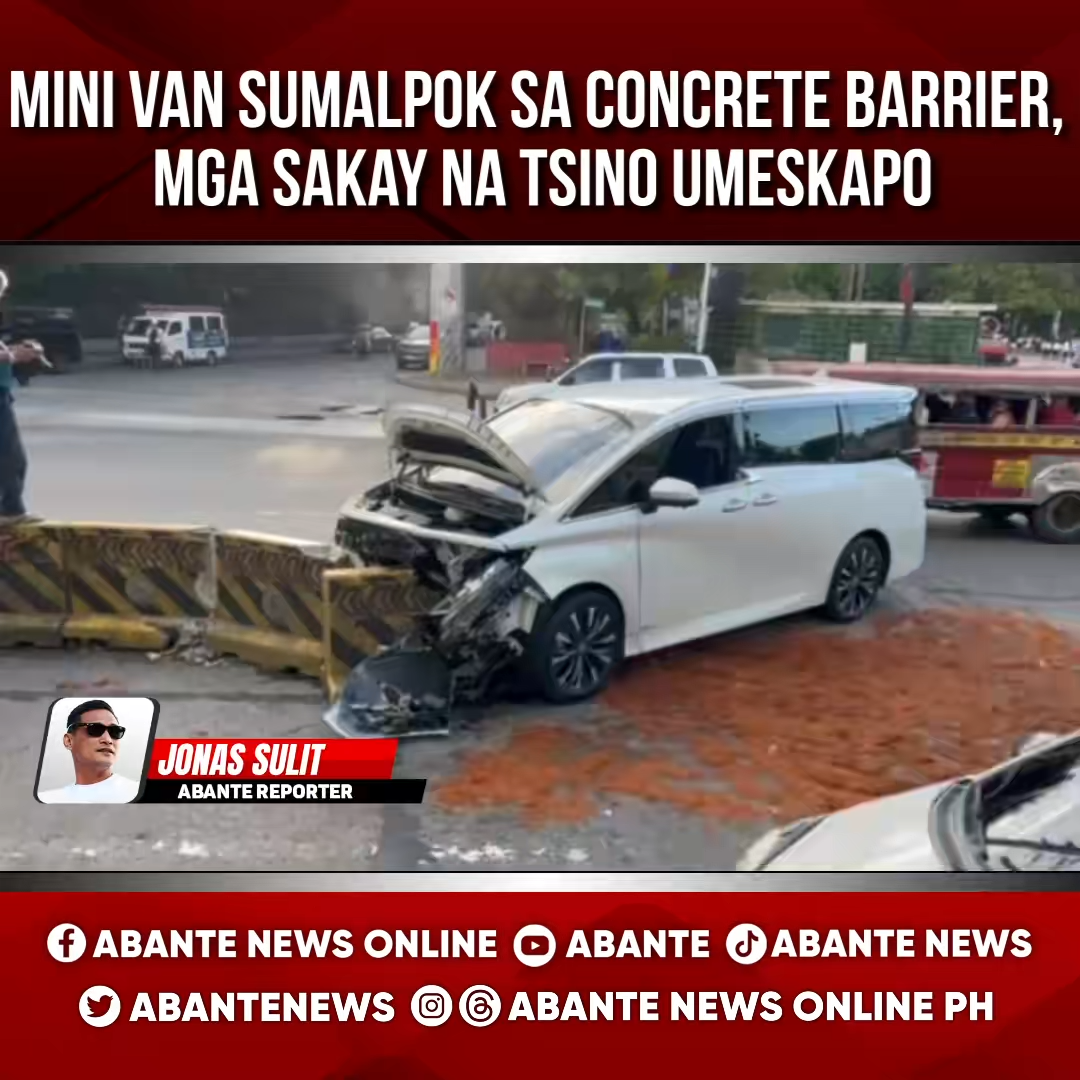官方新闻内容:一辆丰田埃尔法(小型货车)在马尼拉市政厅附近的P.Burgos地区撞上混凝土护栏。据目击者称,事故发生后,几名中国外国人从车上下来并迅速逃离。